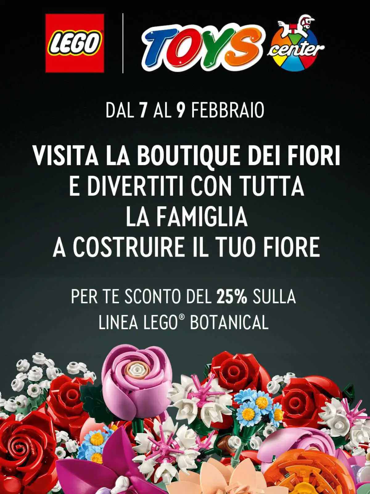 Dal 7 al 9 febbraio, visita la boutique dei fiori Lego e divertiti con tutta la famiglia a costruire il tuo fiore. Per te, sconto del 25% sulla linea LEGO Botanical*.