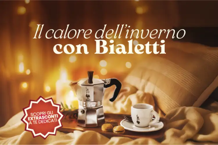 Scopri il calore dell'inverno con Bialetti! Concediti un momento di pausa avvolgente e gustoso durante le fredde giornate d'inverno. Acquista in negozio i tuoi prodotti preferiti e approfitta delle offerte imperdibili fino al 50% e degli extrasconti fino al 20%. Ti aspettiamo!