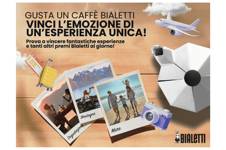 Partecipa al Concorso VINCI L’EMOZIONE DI UN’ESPERIENZA UNICA di Bialetti: acquista almeno 50 euro di prodotti Bialetti! Prova a vincere una fantastica esperienza e tanti altri premi esclusivi Bialetti al giorno per la tua pausa caffè! Concorso valido fino al 23/05/25. Scopri di più in negozio e sul sito Bialetti.com.