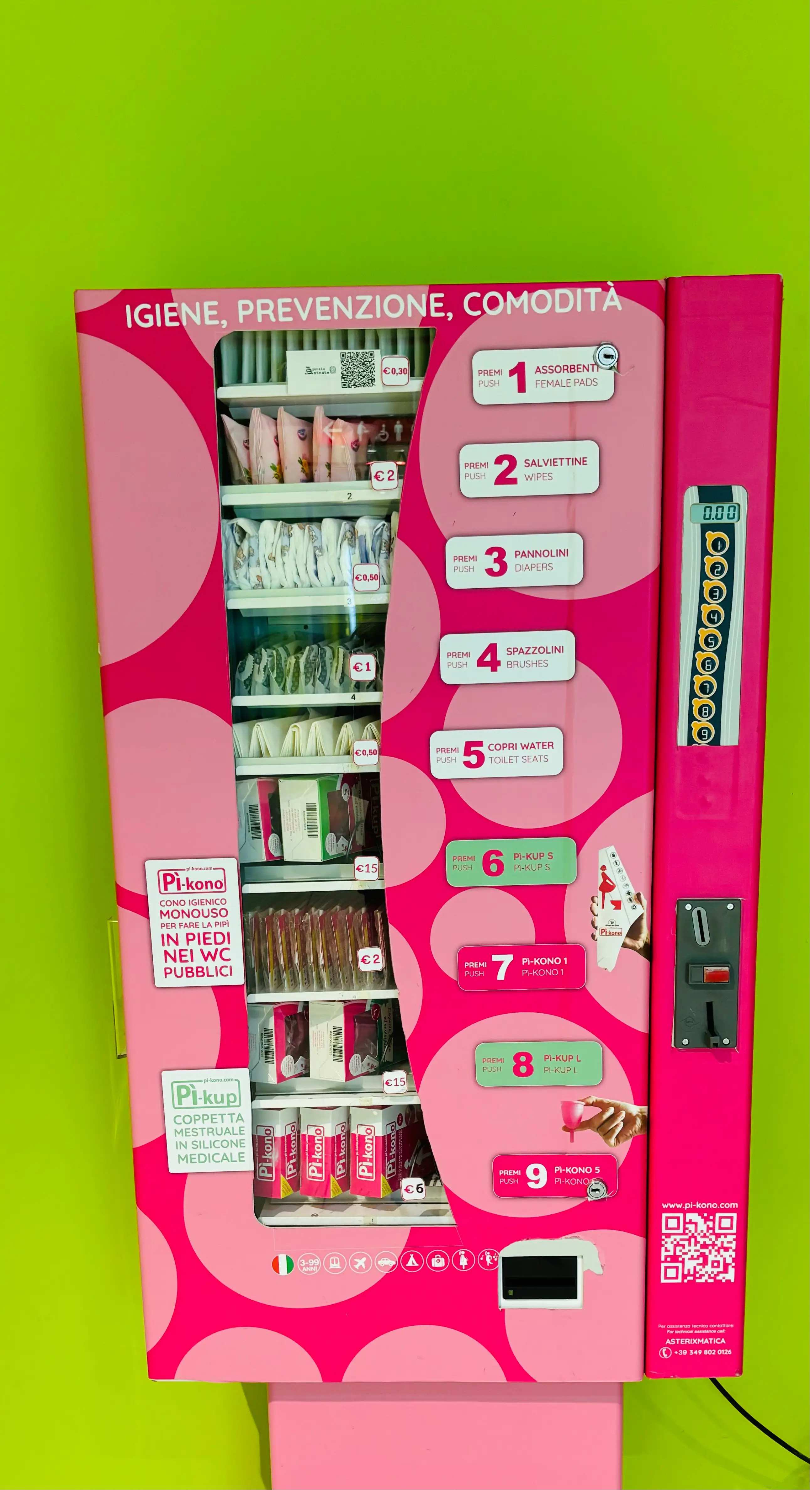 I prodotti per l'igiene femminile sono disponibili in appositi distributori situati nelle aree toilette.