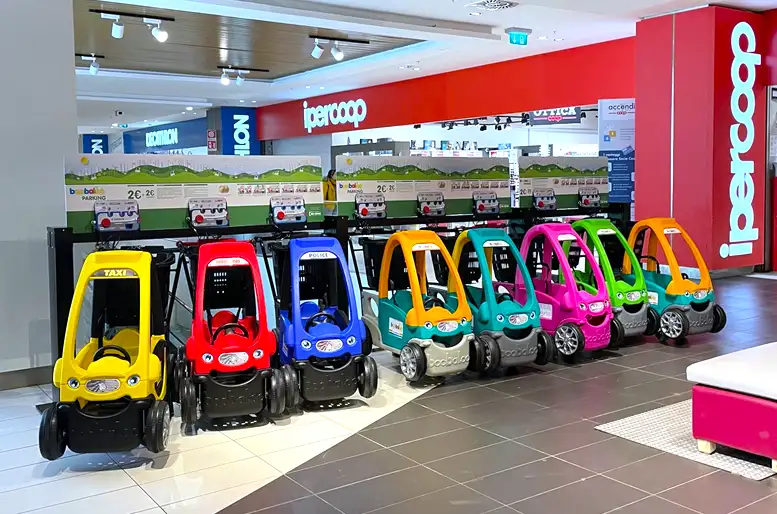 Rendi la visita con i bambini divertente e memorabile noleggiando una macchina-carrello! Sono disponibili presso Infopoint e presso ingresso Ipercoop.